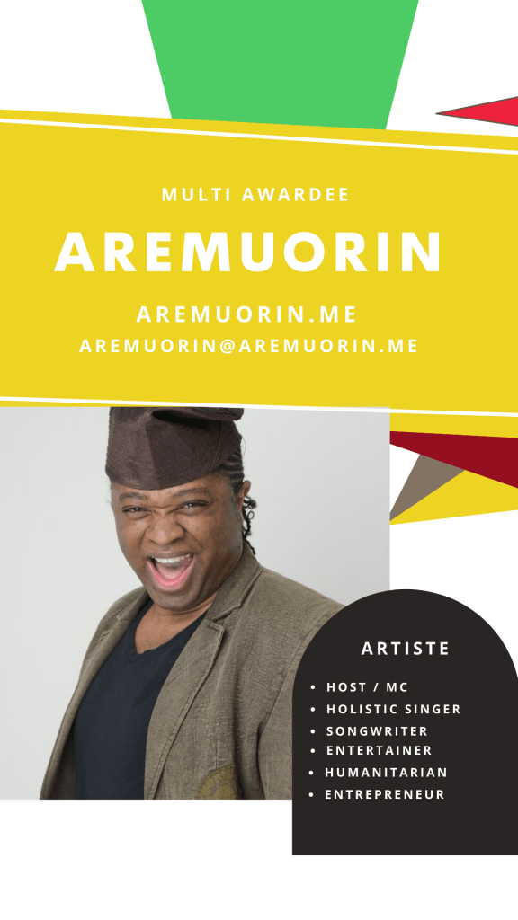 Aremuorin is a multi-award-winning art artist, writer, and humanitarian, known for his unique fusion of music, writing, and advocacy. With a focus on empowerment and social justice, his work aims to inspire, educate, and uplift communities worldwide. Aremuorin has been honored with numerous accolades, including awards in the UK, USA, and Africa, and holds two honorary doctorate degrees for his contributions to both the arts and humanitarian work. His artistry goes beyond entertainment, as he uses his platform to bring attention to issues of mental health, social change, and cultural pride.